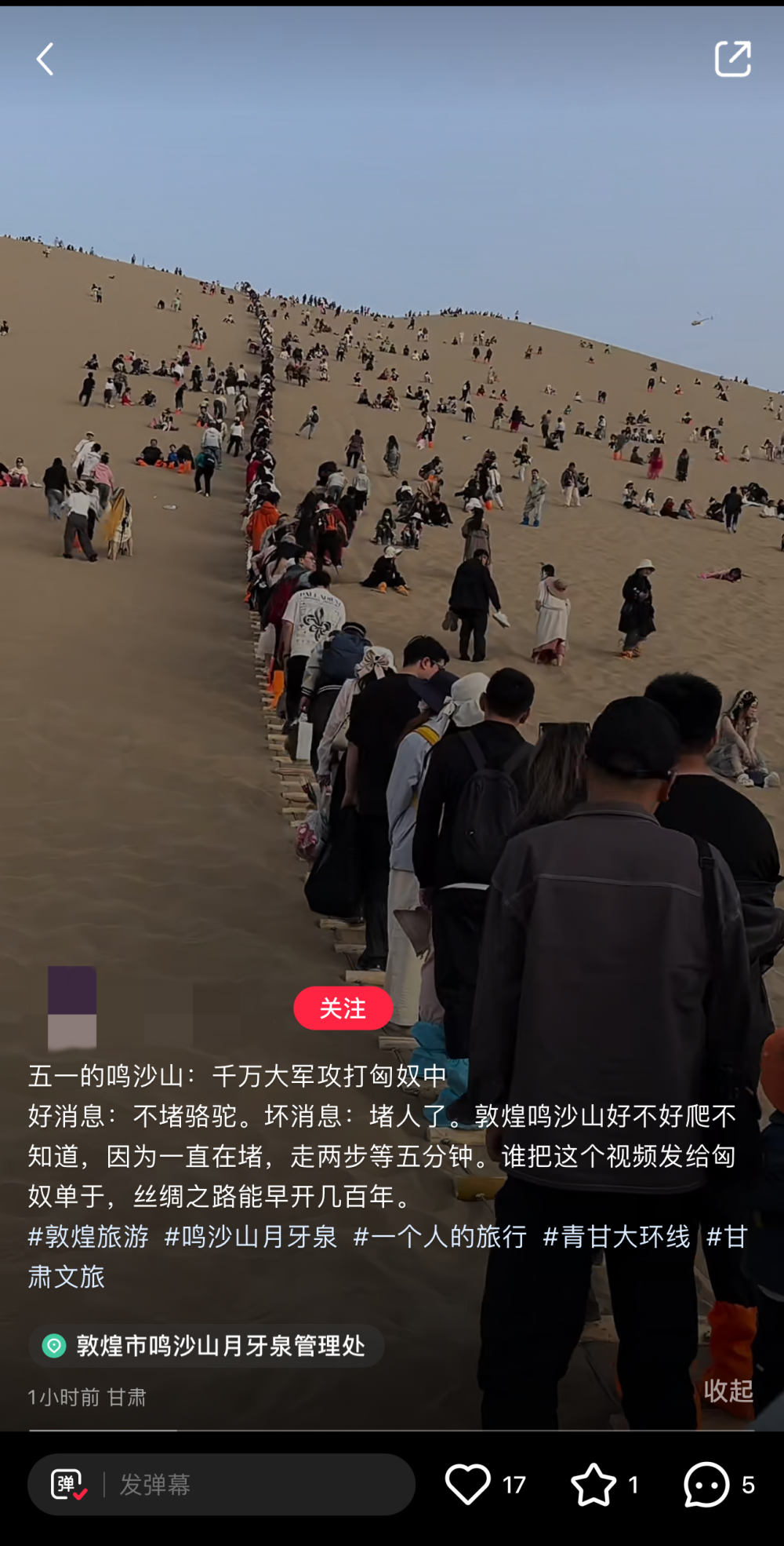 还有甘肃的网友在发布的关于敦煌鸣沙山的笔记中称:“好消息:不堵骆驼。坏消息:堵人了……走两步路等五分钟。”