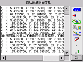 7.    首次进行学习点学习后,之后可自动进行该站各点位的自动旋转照准和测量,并计算测量结果是否在限差范围内
