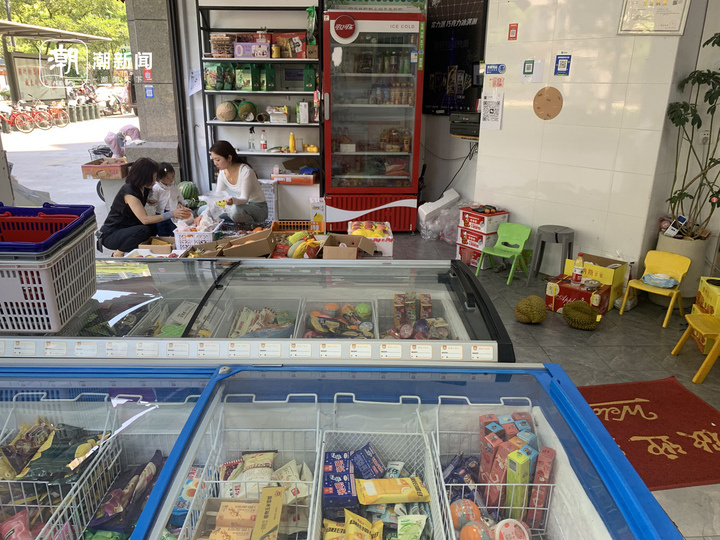 在五丰冷食朝晖二小区店,8台冰柜中有一半放着冷饮雪糕,其余则都是速冻食品。该店位于小区内部,周围居住的老年人较多。工作日的早上,来店里买雪糕的人并不多。