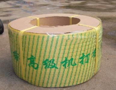打包带别名捆扎带。包装用打包带(捆扎带)系以聚乙烯,聚丙烯树脂,冷轧带钢为主要原料,也有以尼龙和聚酯为原料的,经挤出单向拉伸制得、热处理发蓝制出。除用于瓦楞纸箱的封箱捆扎、热轧钢卷捆扎、冷轧钢卷捆扎外,还可捆扎玻璃、管材、素材、水果等。