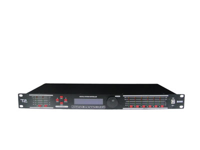 2路信号输入、6路输出,每路参数可随意设定,其中有5段参量均衡、分频、压限、延时、相位调整等。