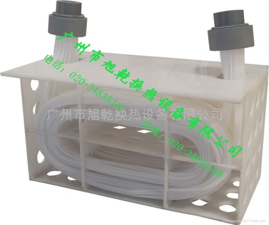 2.氟塑料换热器的性能:采用PFA、FEP、PVDF管材制作换热器材质后。比聚四氟四氟乙烯(PTFE)换热器材质更加优异,并具有更高的热稳定性、柔软性、抗裂性及透明性。产品适用温度范围在-180~260℃;中间耐温性极佳,可弯曲成任意形状,但曲率半径应≥150mm。优异的电绝缘性、不粘性、抗老性、不论在任何强腐蚀性气体,液体和长期暴露在恶劣的大气中,抗老化性均能长达10年以上。