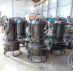PSQ型耐磨合金潜水搅拌污泥泵,抽泥泵,排泥泵是电机与水泵同轴潜入介质中工作的水力机械,该泵过流部件采用高合金耐磨材料制造,具有较好的耐磨性,过流通道大,适用于输送含有较大固体颗粒的泥沙、泥浆、矿浆、煤浆、砂石等介质.该系列产品吸收国内外先进技术设计制造,水泵除主叶轮外在底部增加一套搅拌叶轮,能将沉积的淤渣喷击成湍流,是水泵在没有辅助装置的情况下实现高浓度输送。独特的密封装置能够有效平衡油室内外压力,较大限度保护了机械密封的可靠性,电机采用过热保护、进水检测保护等多种保护措施,能够在恶劣的工况条件下长期安全的运行。