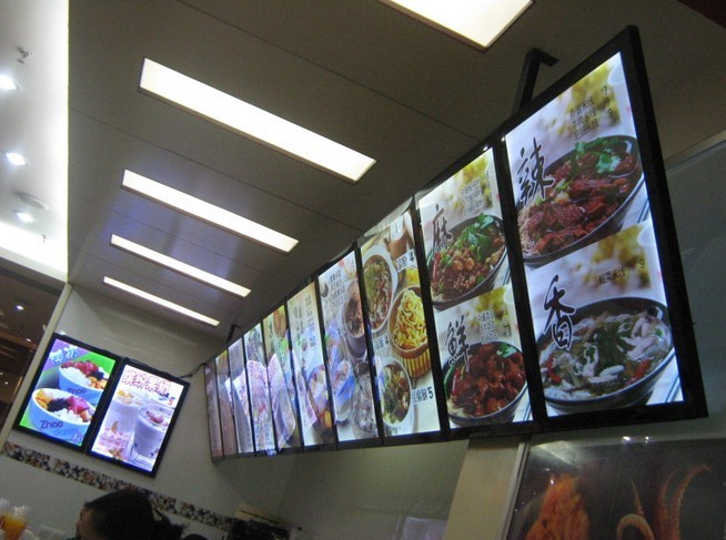 由于面板带有磁铁,所以面板就可以吸在上面,这也是磁吸灯箱名字由来的一个原因。