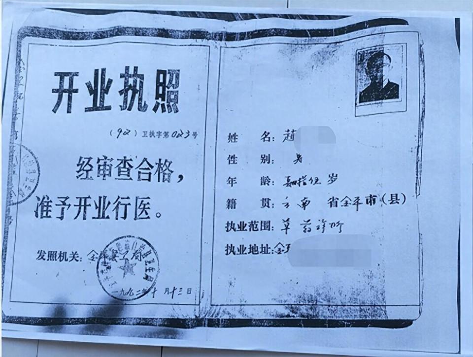 王先生介绍,他岳父是云南省金平县人,1942年出生。1992年10月,金平县卫生局为他岳父颁发了“个体医务人员开业执照”(92卫执字第023号)。同月,金平县卫生局下发了“关于批准个体开业行医的通知”,批准他岳父行医。1999年5月,云南省卫生厅还给他岳父颁发了“云南省乡村医生中医药培训合格证”。